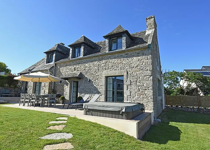 Ty Dag - Petite Terre Vue Mer, Spa, Plage A 300M Villa offers a beachfront accommodation, around 20 minutes on foot from Chapelle Sainte Barbe. The venue also comes with a shared kitchen, which is equipped with a refrigerator, an oven, and kitchenware.